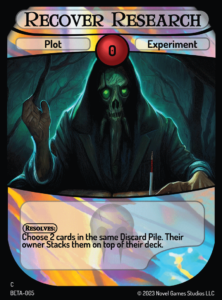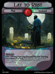 Take advantage of cards like Lay to Rest to inter your opponent’s Minions from the Discard Pile and reduce the number of resources they have to achieve victory. In a pinch, Recover Research can also slow down an Infernal deck by Stacking two Infernal Minions back on top of their deck.
