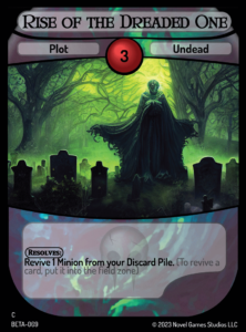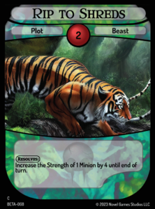 When you’re ready to end the game, the timing will need to be precise; once you’ve drawn your Sprout Claws, that’s when you know it’s safe to play Rip to Shreds into countdown. When Rip to Shreds hits 1, play Sprout Claws so it will resolve on that same turn. Your Blazing Raptor should be in play by then, but in a pinch, a Protective Parent’s Egg being buffed by both Raptor’s Nests can also suffice. Sacrifice whichever Minion you pumped with all of your Plots and Artifices up to 12 Strength to activate Inviting Mausoleum, then move to your Maintenance Step to Become the Apex! and win the game!