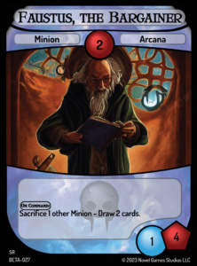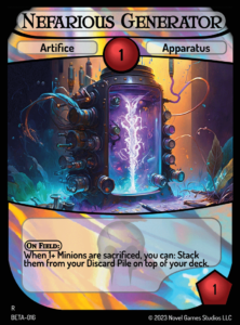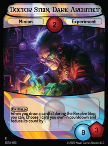 As cards like Nefarious Generator and Obstinate Mutant resolve, the rest of the game will focus on you taking advantage of all of these interlocking pieces—sacrificing Minions with Faustus to trigger Nefarious Engine, which Stacks those Minions to trigger Excellent Research; drawing with the effect of Eager Darkmage to trigger the effect of Doctor Stein, Dark Architect to reduce your cards in countdown—as you pursue enough pieces to unfold your final turn.