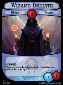 At this point, Archmage’s Doomspell is also at 8 count remaining, so you now have two possible Plots that can achieve your Master Plan, neck and neck. Your choices from here will largely rely on reading your opponent and counter-measuring their potential disruptions. At the very least, Wizard Initiate’s Sacrificed effect will activate, letting you choose either of these Plots to tick down by one, bringing you closer to victory. You may also choose to use Doomspell Procedure to tick down Perfect Gathering of Magic by one.